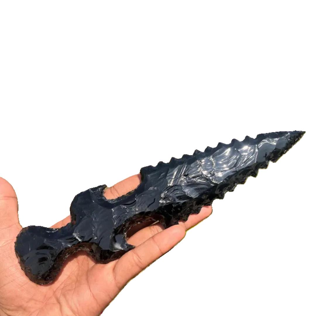 10″ Large Balck Obsidian Knife Hand Knapped Crystals Knife