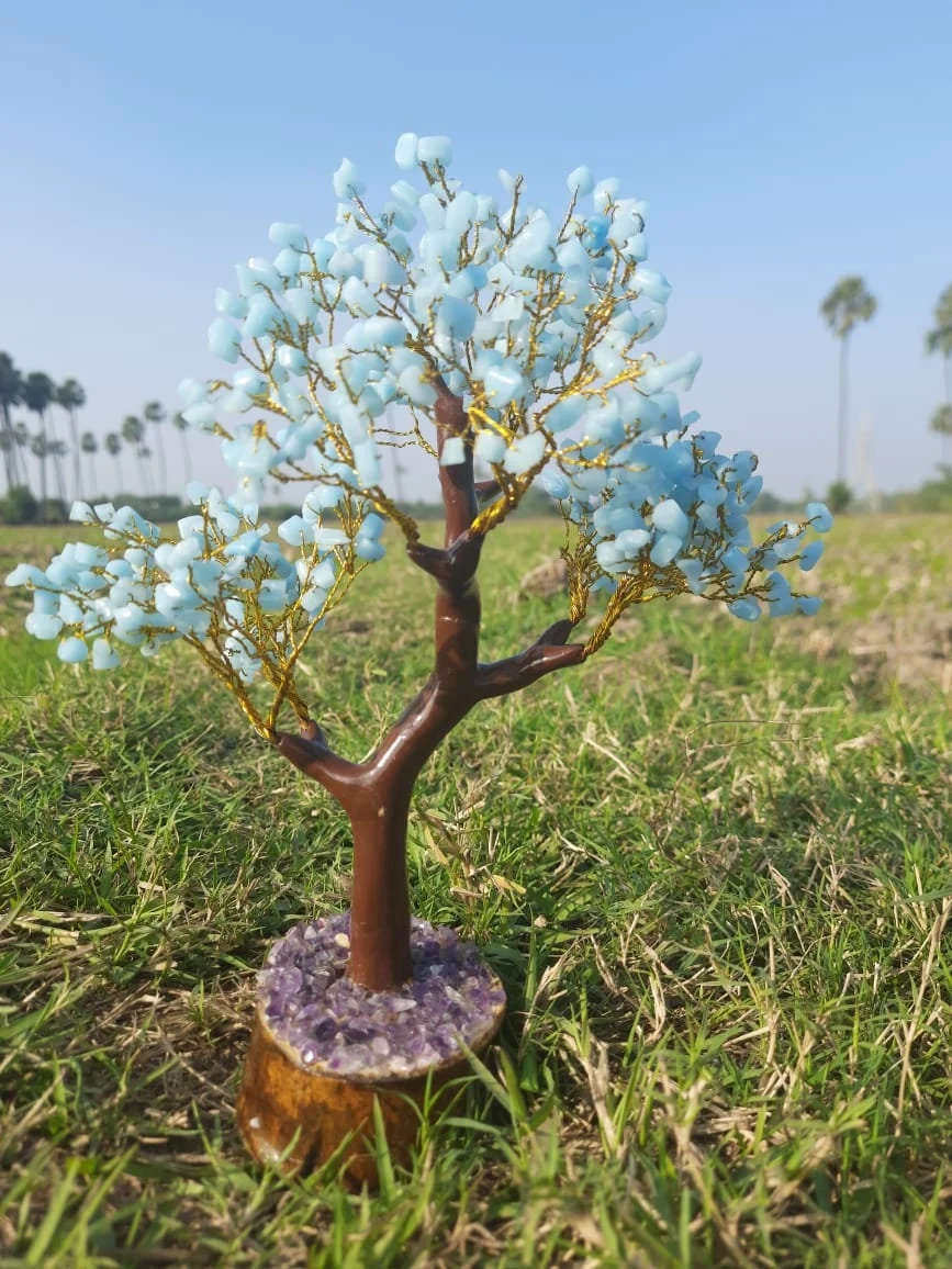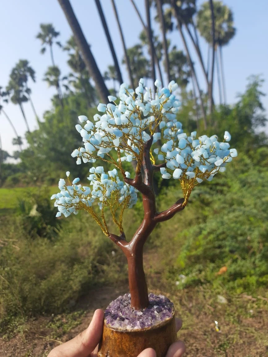 Listing for (1)Blue Onyx Gemstone Crystal Tree – Chakra Reiki Bonsai Home Decor Feng Shui