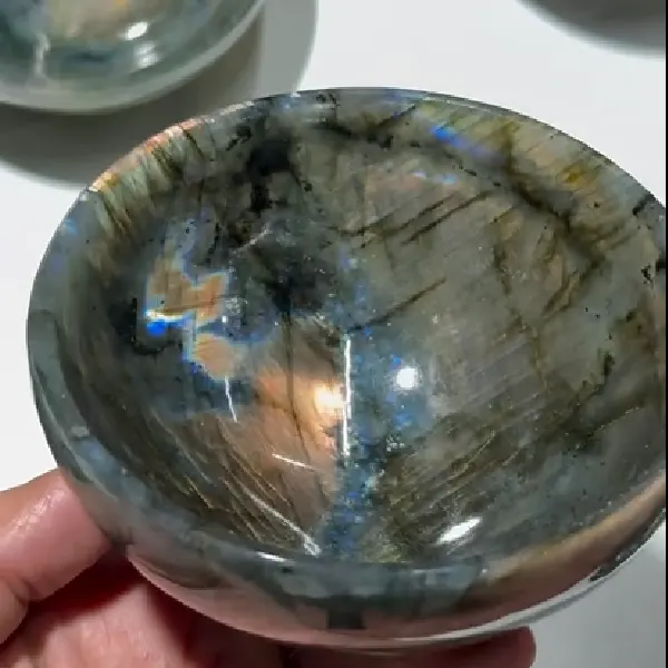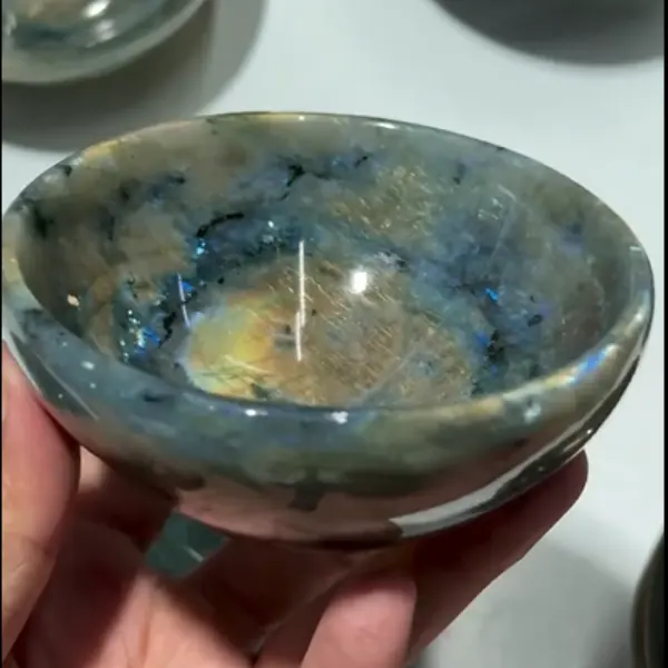 Full Flashy Labradorite Crystal Bowl – Hand-Carved Decorative Dish for Energy Healing, Protection & Spiritual Décor