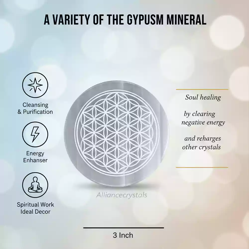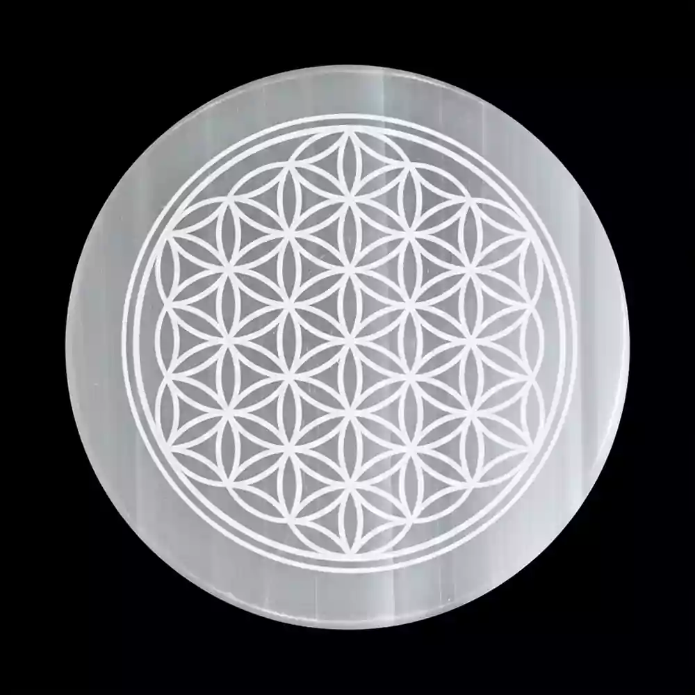 Flower of Life Selenite Crystal Charging Plate – Cleanse & Energize Your Crystals