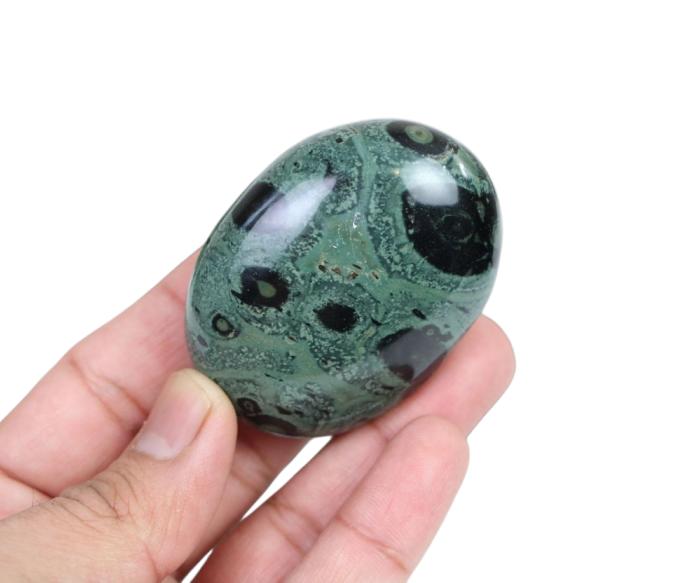 Discover the soothing power of the Earth with our Kambaba Jasper Palm Stone , a smooth, hand-polished crystal carved from natural Kambaba Jasper — also known as “Green Cosmic Jasper,” “Sacred Earth Stone,” or “Nature’s Stone.”