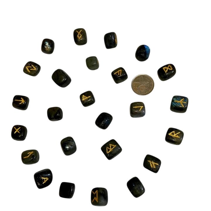 This powerful set blends the ancient Norse runic system with the mystical energy of labradorite — known for its ability to enhance intuition, psychic abilities, and spiritual transformation. Ideal for witches, healers, rune readers, and those drawn to esoteric knowledge.