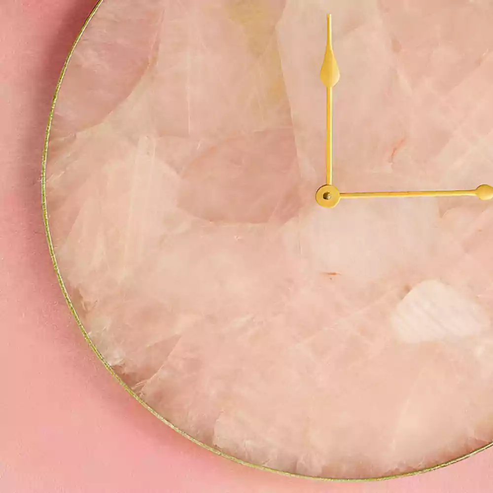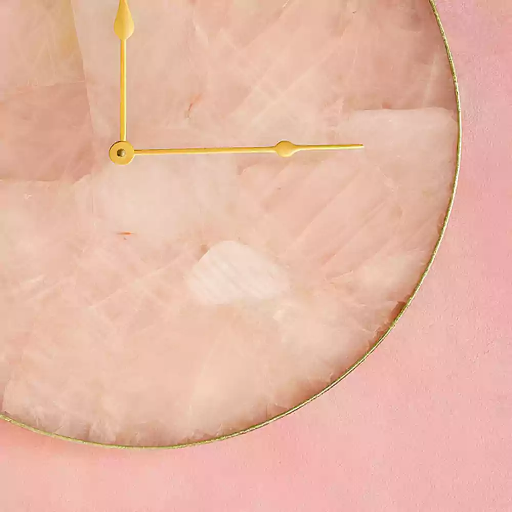 Large Rose Quartz Agate Wall Clock – Luxury Natural Stone Wall Decor