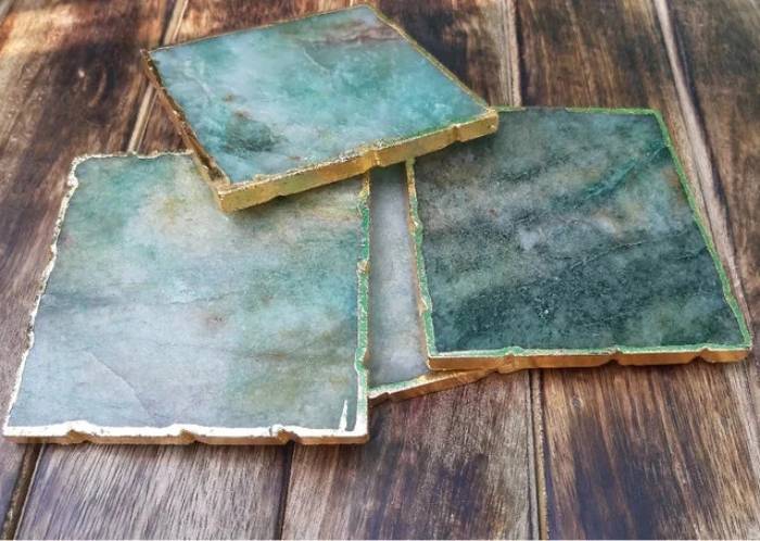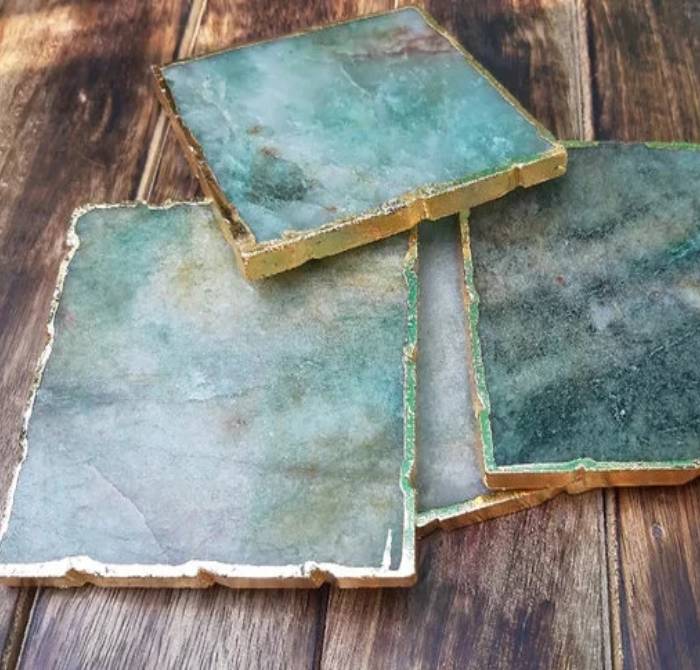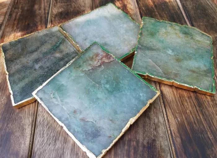 • Unique Design: Due to the natural origin of the aventurine, each piece varies in size, color, and pattern, making every coaster truly one-of-a-kind.