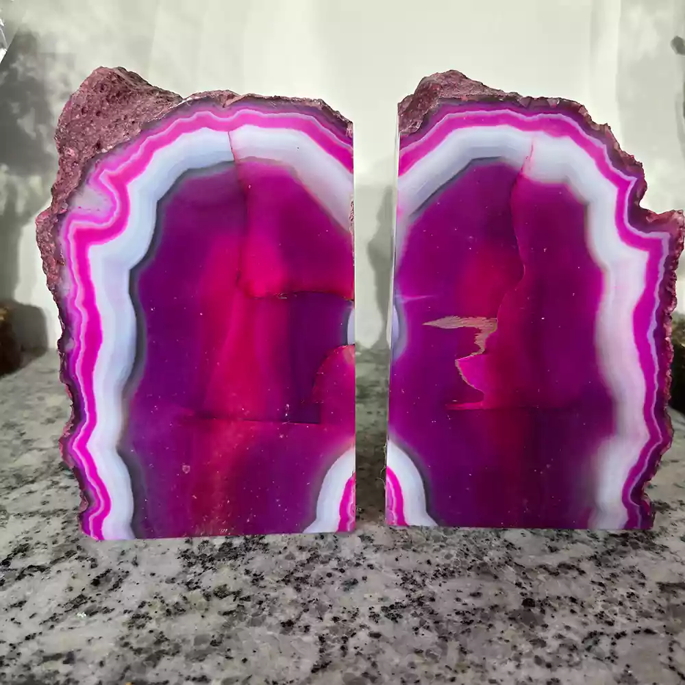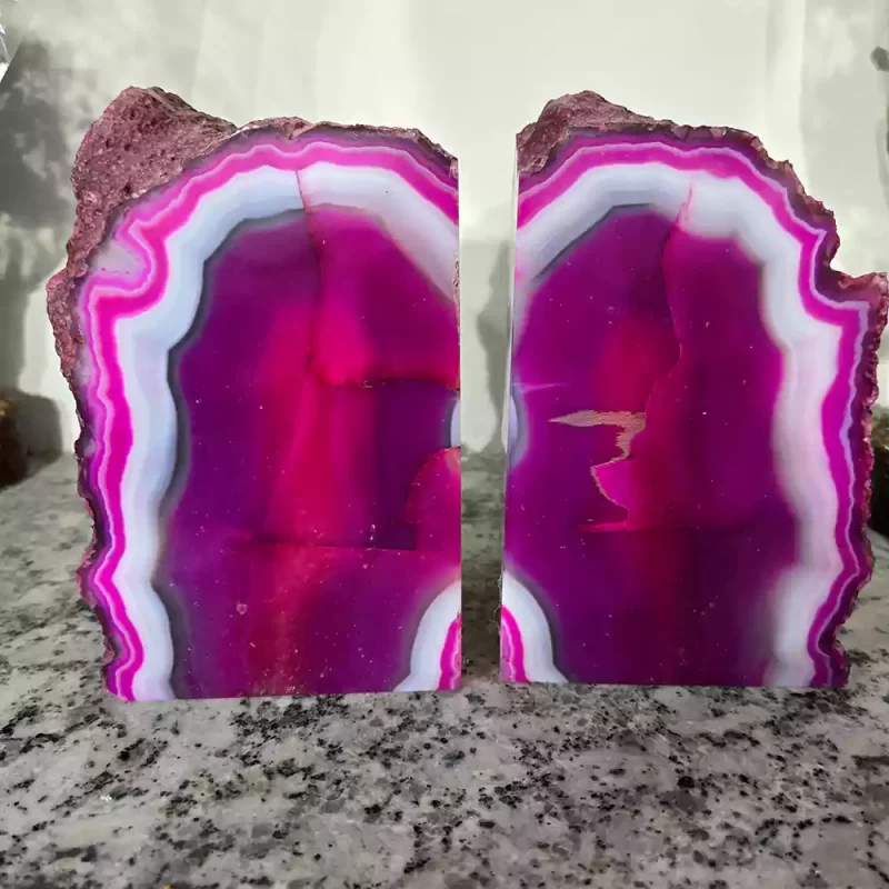 Add a sense of calm, elegance, and natural charm to your space with our Natural Pink Agate Bookends, handcrafted from authentic, high-quality AAA-grade Pink Agate stone.