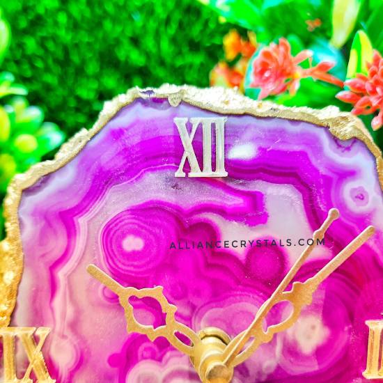 • Home Decor: Elevate your living space with this unique and stylish pink agate clock.