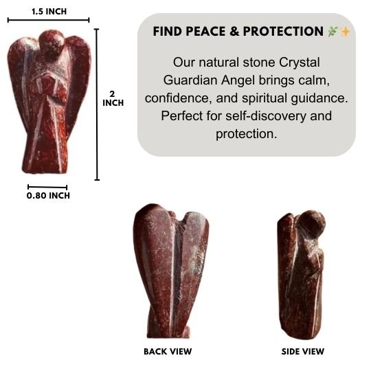 Harness the powerful, stabilizing energy of Red Jasper with this beautifully hand-carved angel figurine. Known as the Stone of Endurance, Red Jasper provides courage, stability, and protection, making it an ideal spiritual companion for strength and grounding.