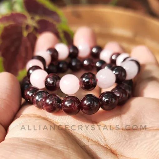 • Natural Beauty : Each bracelet is crafted with genuine Rose Quartz and Garnet beads, featuring a stunning blend of soft pink and rich red tones that exude elegance and warmth.