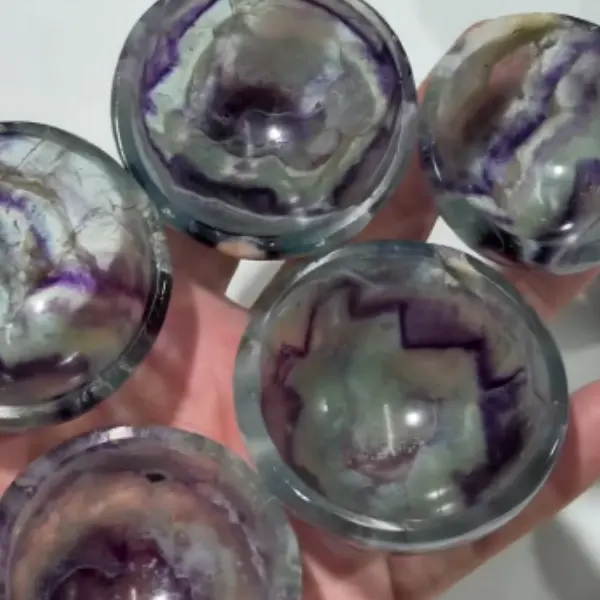 Each bowl is hand-carved and polished to bring out Fluorite’s vibrant colors and energetic properties. No two bowls are exactly alike, making this a unique and collectible set.