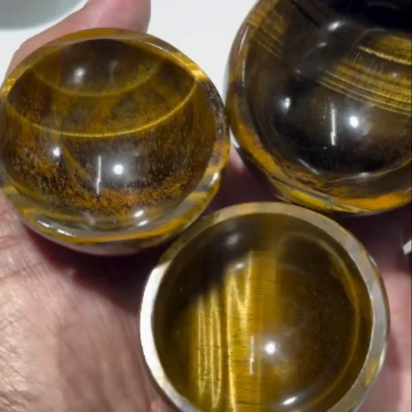Tap into the power of confidence and protection with this elegant Set of 2 Tiger Eye Crystal Bowls.