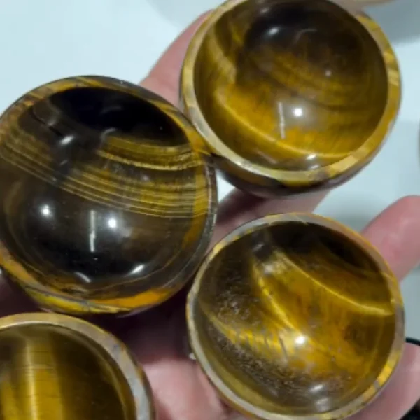 Each bowl is hand-carved from genuine Tiger Eye, showcasing natural bands and golden flashes that shift with light—a stunning visual and energetic centerpiece.