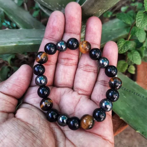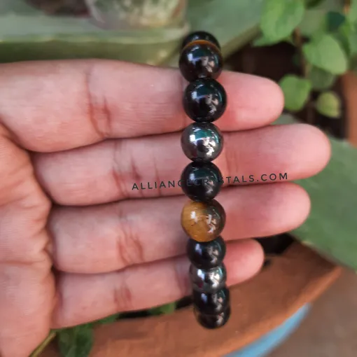 Invite strength, protection, and balance into your life with this powerful Triple Protection Bracelet . Featuring genuine Black Obsidian , Tiger Eye , and Hematite beads, this bracelet combines three of the most potent protective stones to shield against negativity, ground excess energy, and boost confidence. Known for their grounding and shielding properties, these stones work together to promote emotional resilience, clarity, and inner strength. Perfect for meditation, everyday wear, or gifting, this handmade bracelet is ideal for anyone seeking protection and empowerment in their daily life.