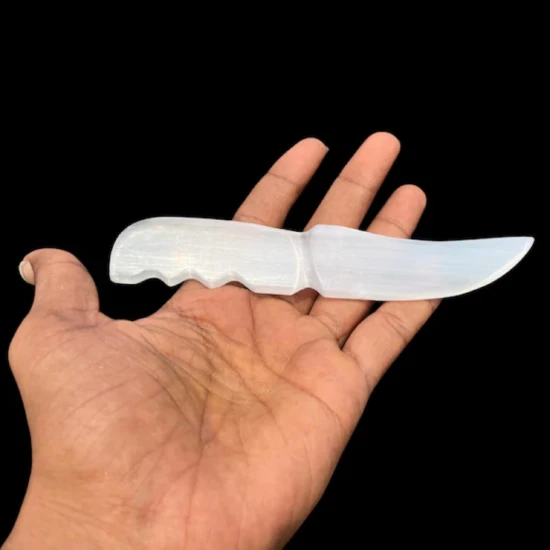 White Selenite Crystal Knife Hand-Carved Polished Gemstone Dagger