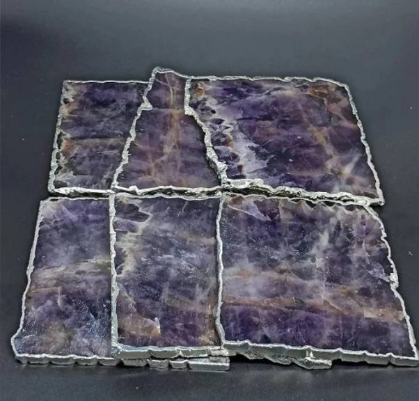 atural Amethyst Coasters – Set of 4 Handcrafted Coasters with Rose Gold, Silver, or Gold Plated Edges