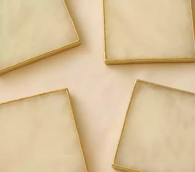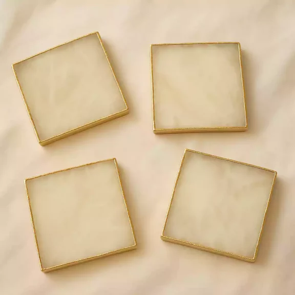 Natural White Agate Coasters – Set of 4 Handcrafted Coasters with Rose Gold, Silver, or Gold Plated Edges